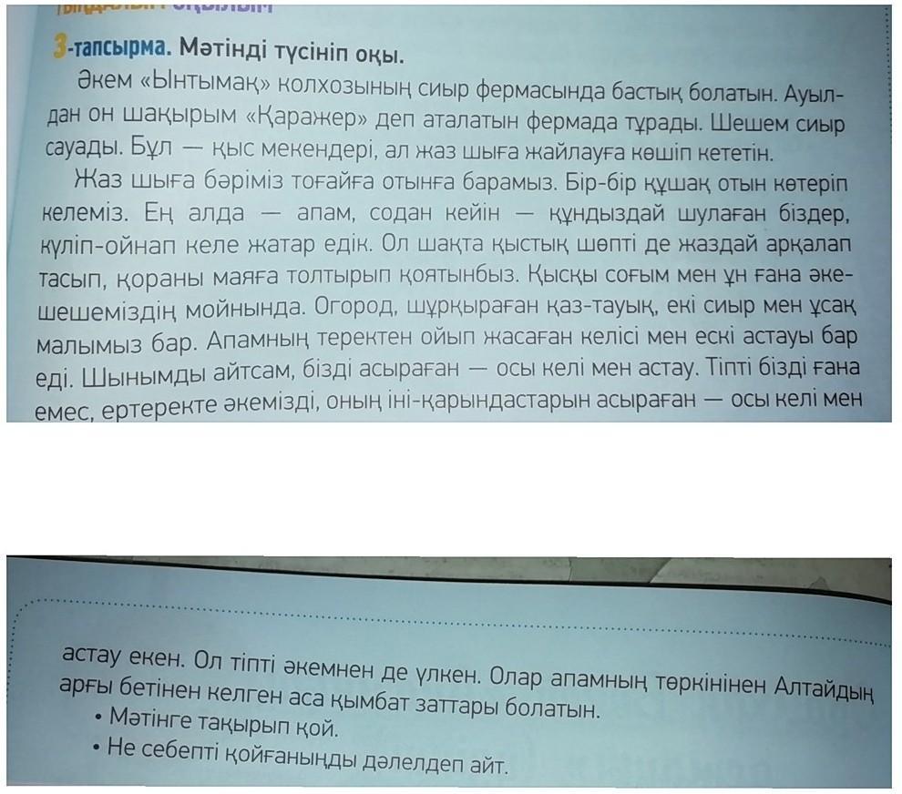 Мой отец был начальником коровьей фермы в колхозе "ынтымақ".Живет в ферме "Қарасиыр",который находится в 10ти километрах от аула.Мать доит коров.Это-зимние стойбища,а летом переезжали в жайлау.
