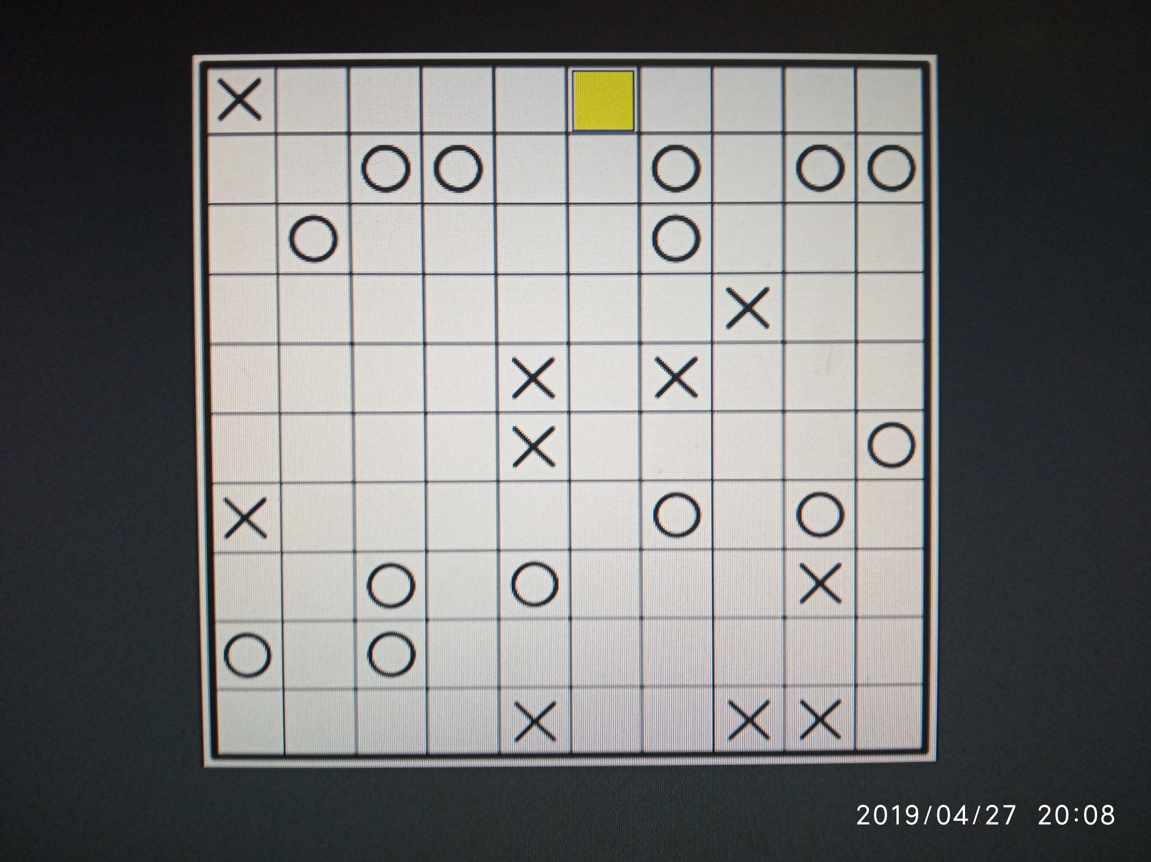 Заполните свободные клетки крестиками или ноликами так, чтобы в каждой строке и в каждом столбце было по пять крестиков и пять ноликов, в каждой строке и в каждом столбце может быть не более двух крестиков или подряд. Что будет в жёлтой клетке - крестик или нолик?