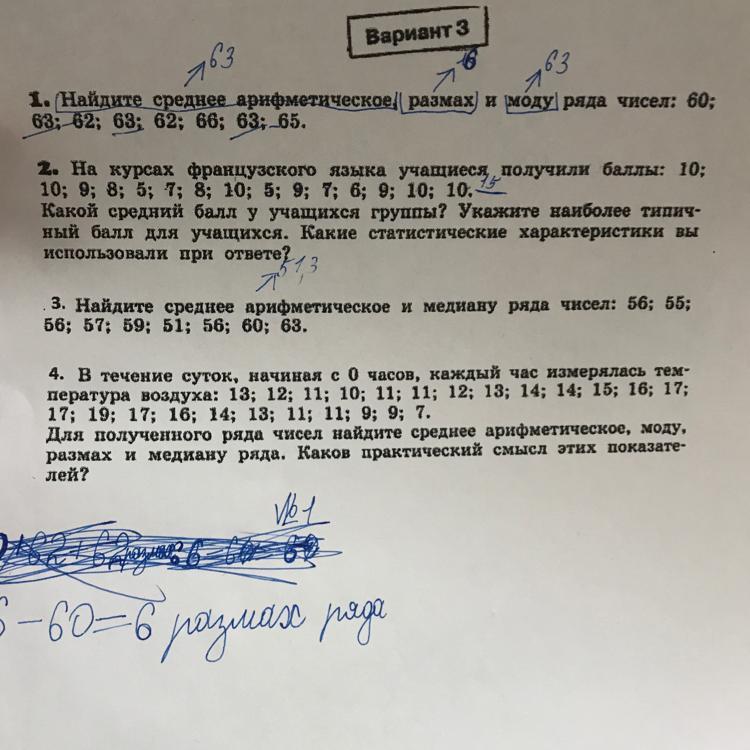 Среднее арифметическое: 63