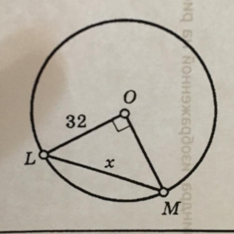 Пояснення:Треугольник равнобедренный (OL и OLM радиусы), OL = OM = 32см. Отсюда, угол OLM = OML = 45.Sin45 = 32 / x. x = 32 корень из 2