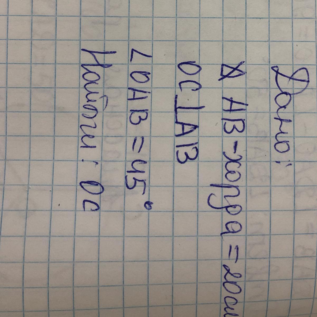 Рассмотрим Δ ОАС,угол А=45°.