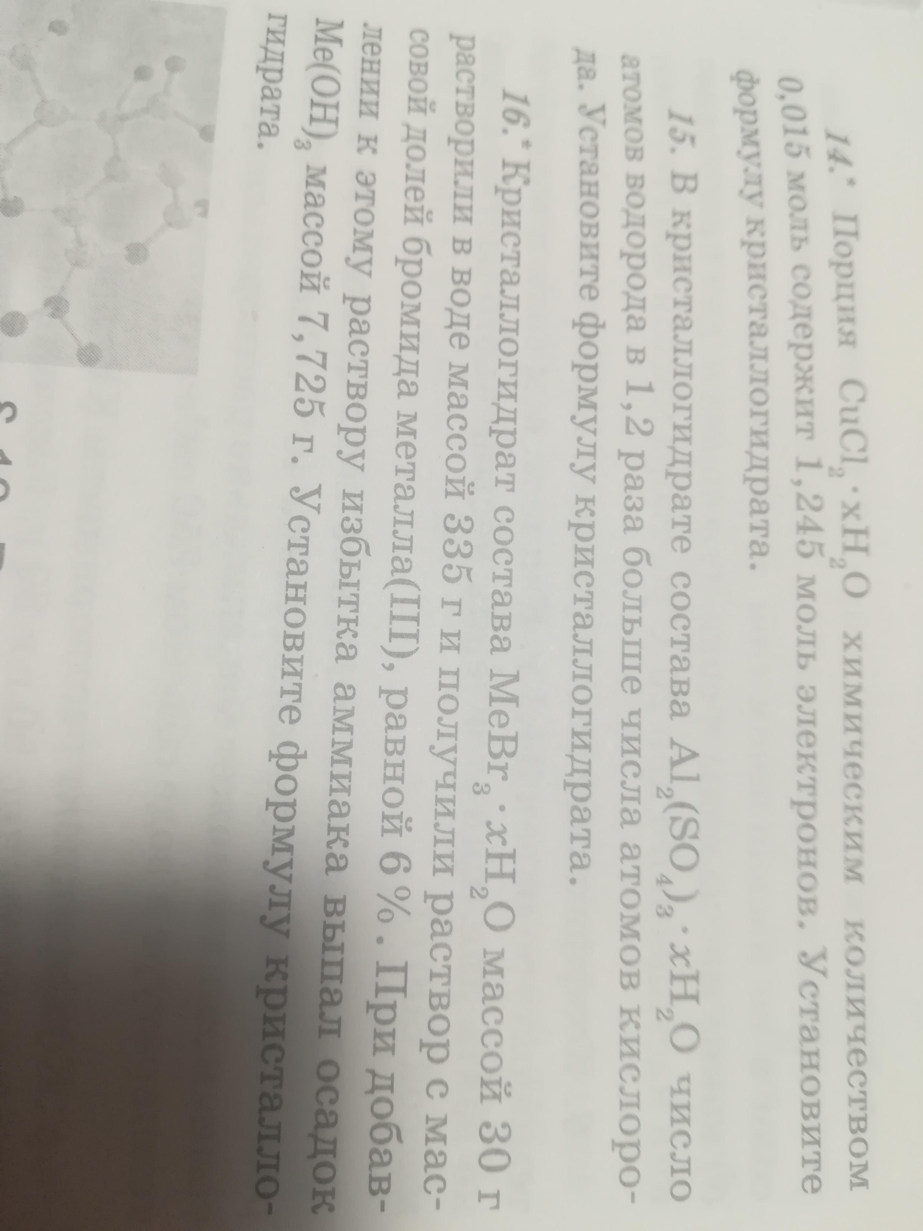 1. Общая масса 6%-ного раствора бромида неизвестного металла равна 30 + 335 = 365 граммов, и он содержит 365*0,06 = 21,9 граммов бромида. Воды в кристаллогидрате, соответственно, 30 - 21,9 = 8,1 грамма (8,1:18 = 0,45 моль).