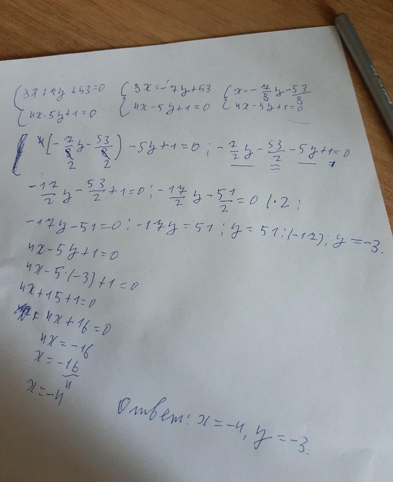 - Всё на листке. Метод подстановки. Сначала выражаешь одну переменную, ищешь другую, а потом подставляешь.