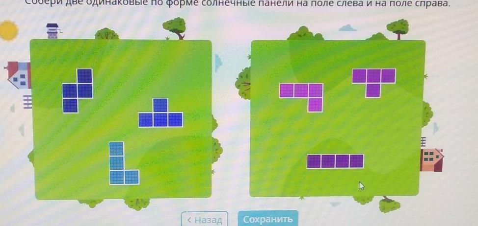 собери две одинаковые по форме солнечные панели на поле слева и на поле справа