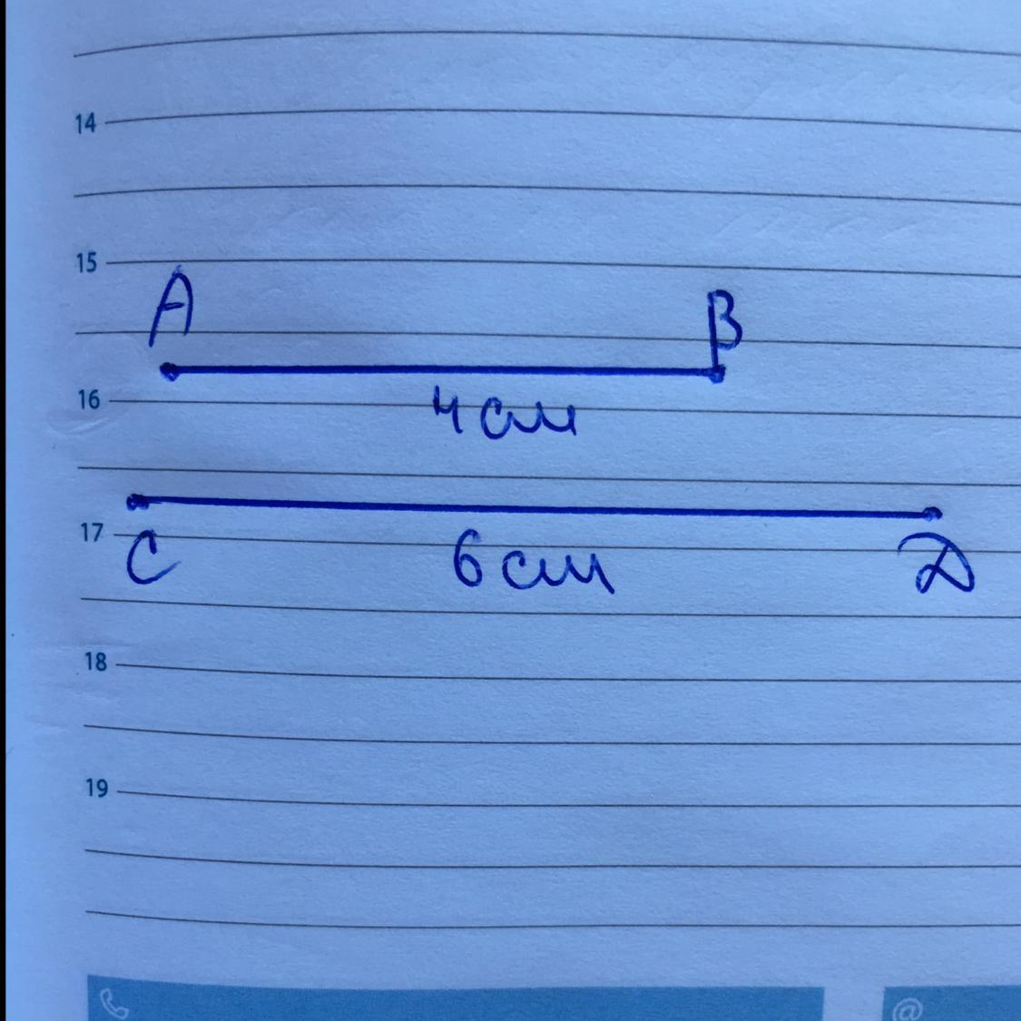 начерти отрезки АВ длинной 4 см,СD длинной 6 см