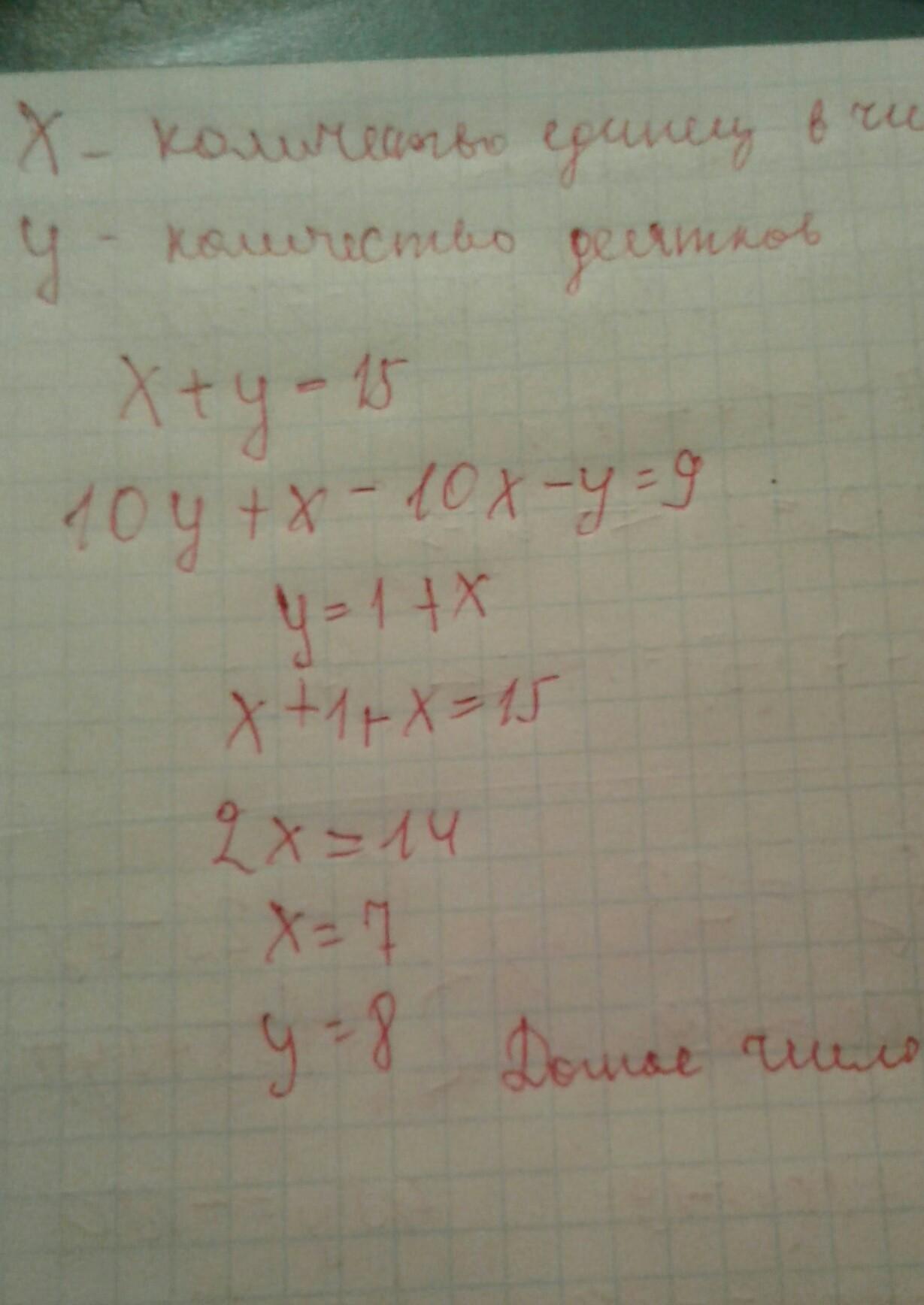 Сумма цифр двухзначного числа равна 15 . Если поменять его цифры местами , то шполучим число которое меньше данного на 9 . Найдите данное число