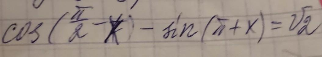 cos( п/2-x)-sin(п+х)=sinx+sinx=2sinx=√2