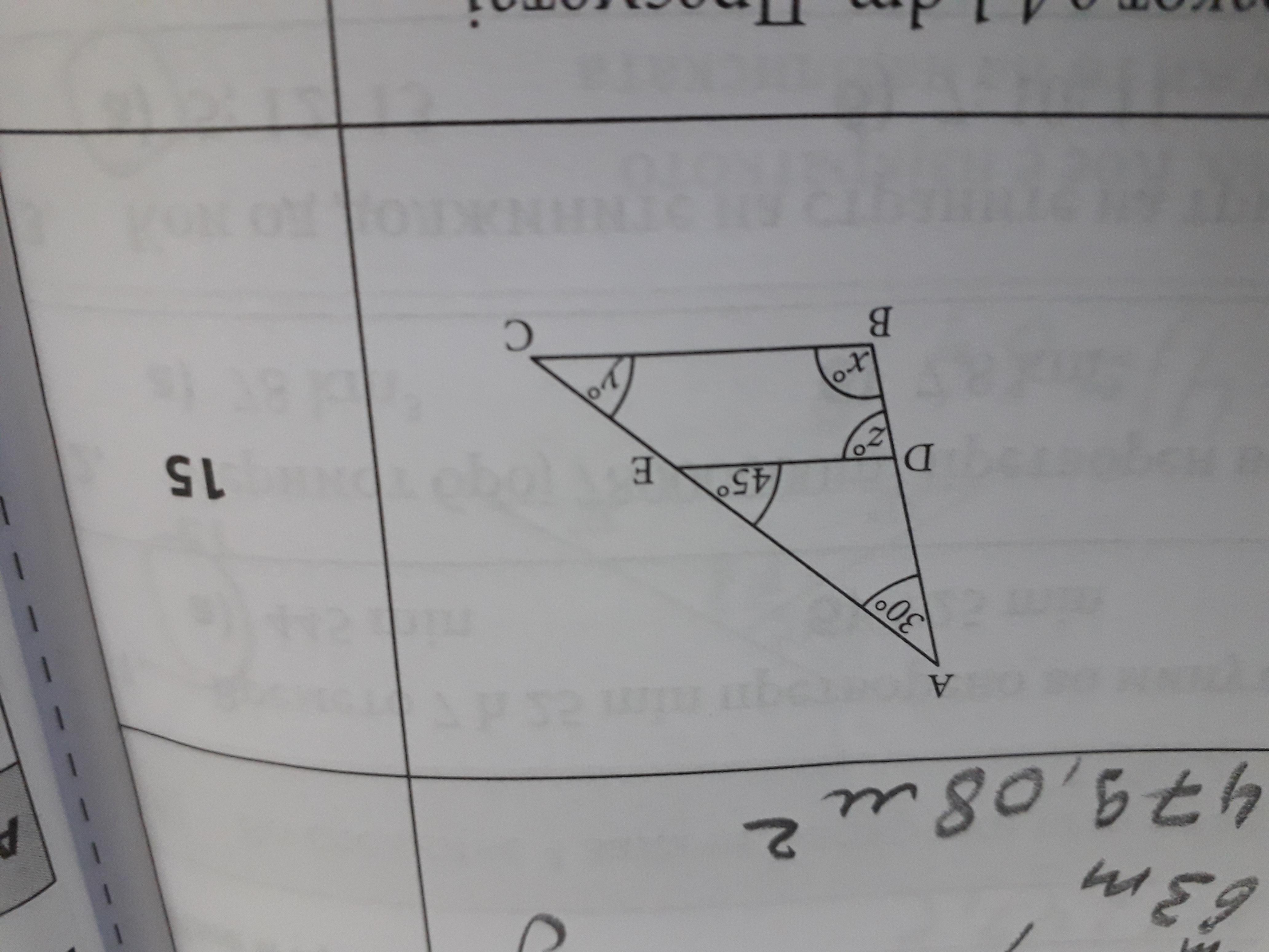1) Так как DE || BC, угол AED равен углу ECB, как соответственные углы при параллельных прямых DE и BC и секущей AC. y = 45°