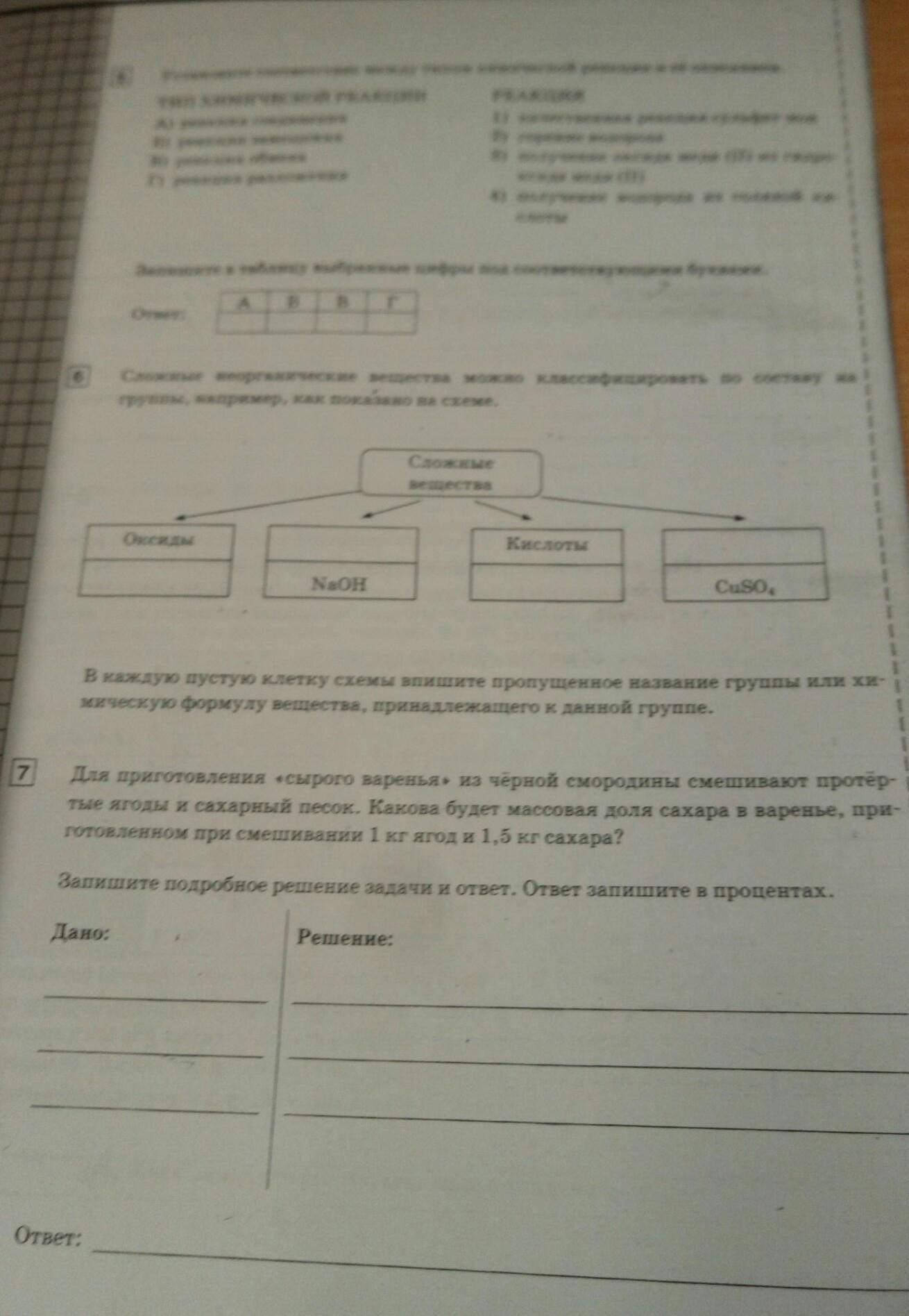 Только 6 номер могу помочь. Оксид: MgO. Основание NaOH. Кислоты H2SO4. Cоли CuSo4
