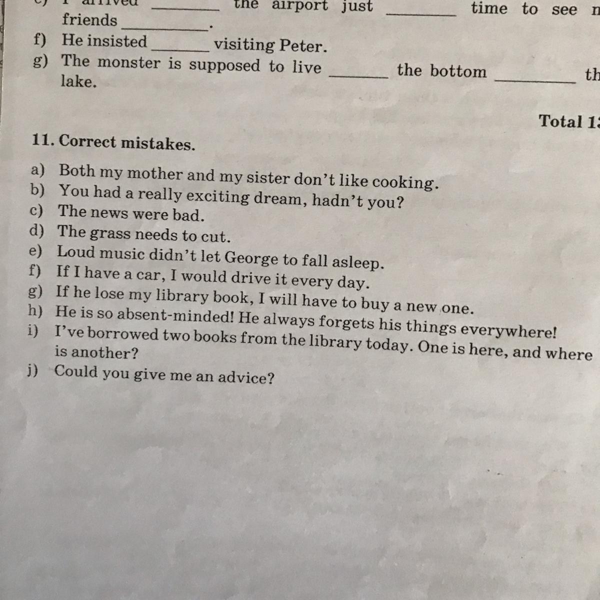 Ответ: 11b - you had a really exciting dream, didn't you? 11h - нет ошибок.