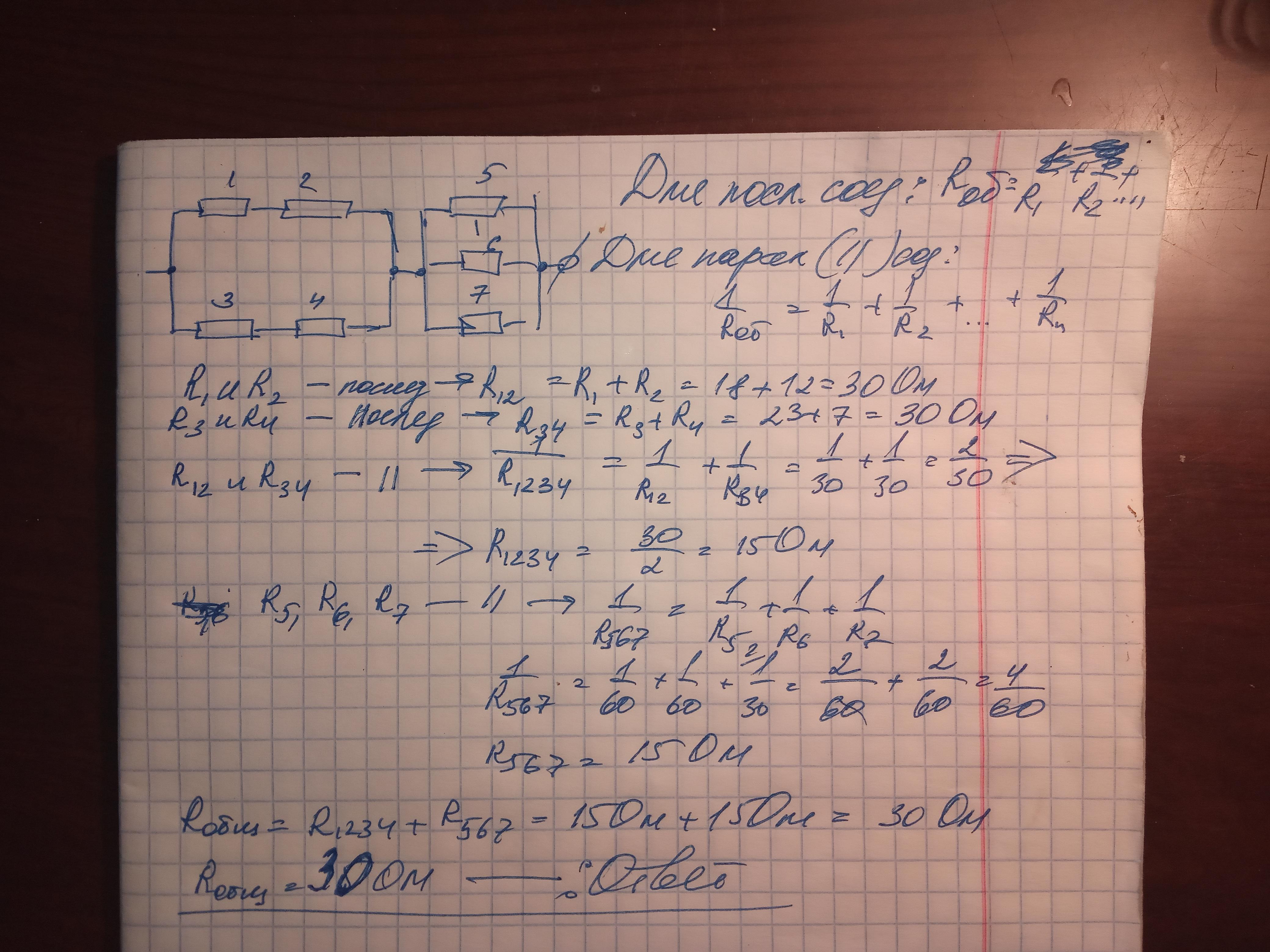 Чему равно общее сопротивление электрической цепи (рис.115), если R1= 18 Ом, R2=12 Ом, R3=23 Ом, R4=7 Ом, R5= 60 Ом, R6=60 Ом, R7=30 Ом? 10-11 класс
