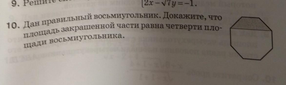 Теперь находишь отношение площади восьмиугольника к площади закрашенной части: