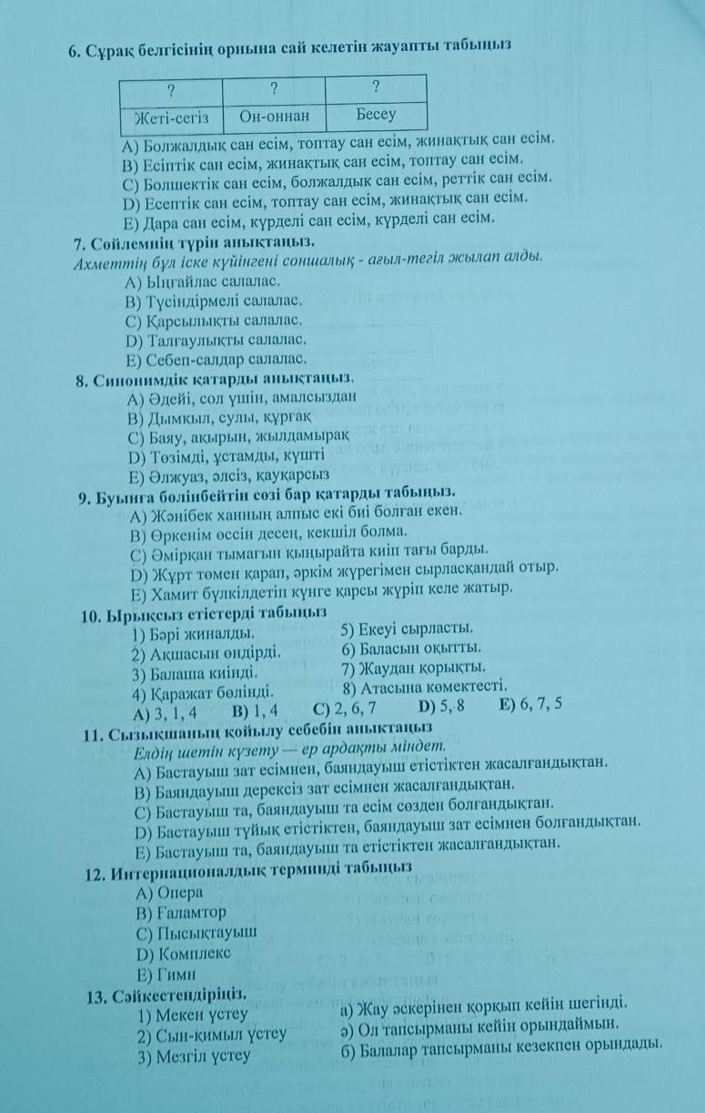 6 - e, 7 - c, 8 - e, 9 - b, 10 - b, 11 - c, 12 - d , 13: 1 - a, 2 - после а, 3 - б