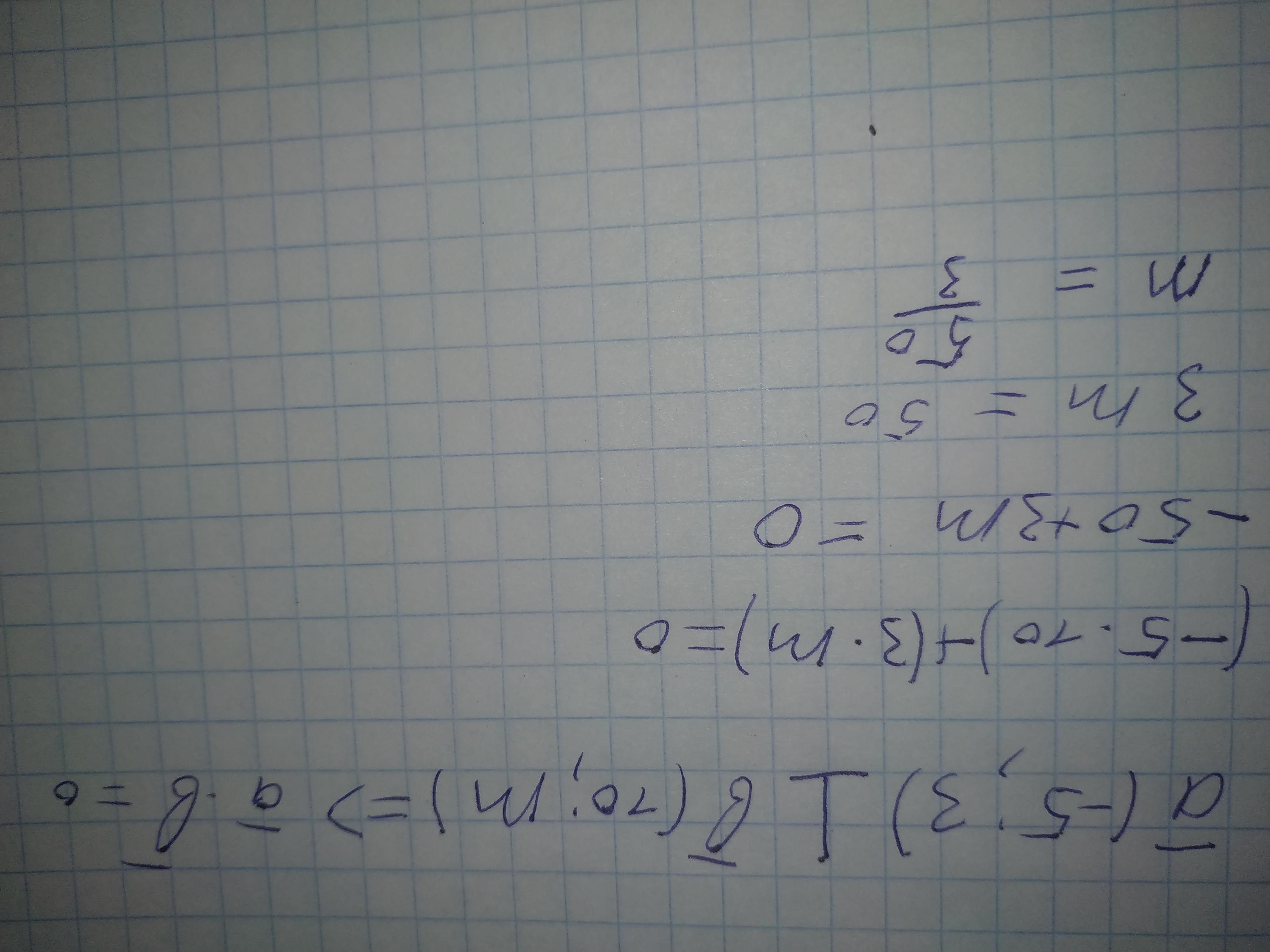 Найдите число m, если известно, что векторы а= ( -5;3) и в =(10, м) перпендикулярны.