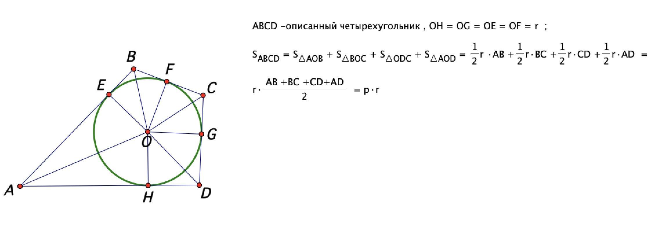 естественно, что доказательство можно обобщить для любого описанного многоугольника