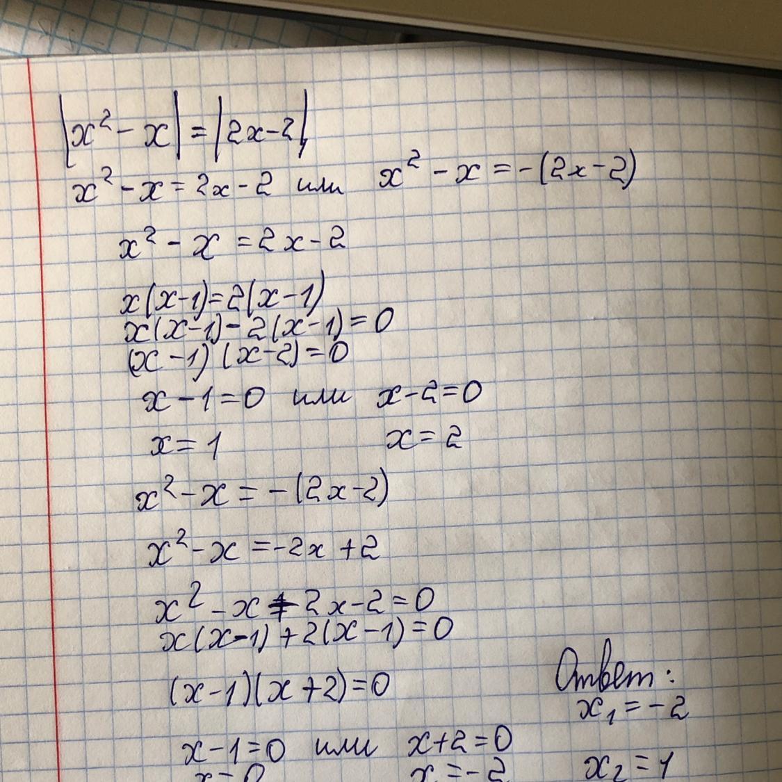 решить уравнение |х²-х|=|2х-2|