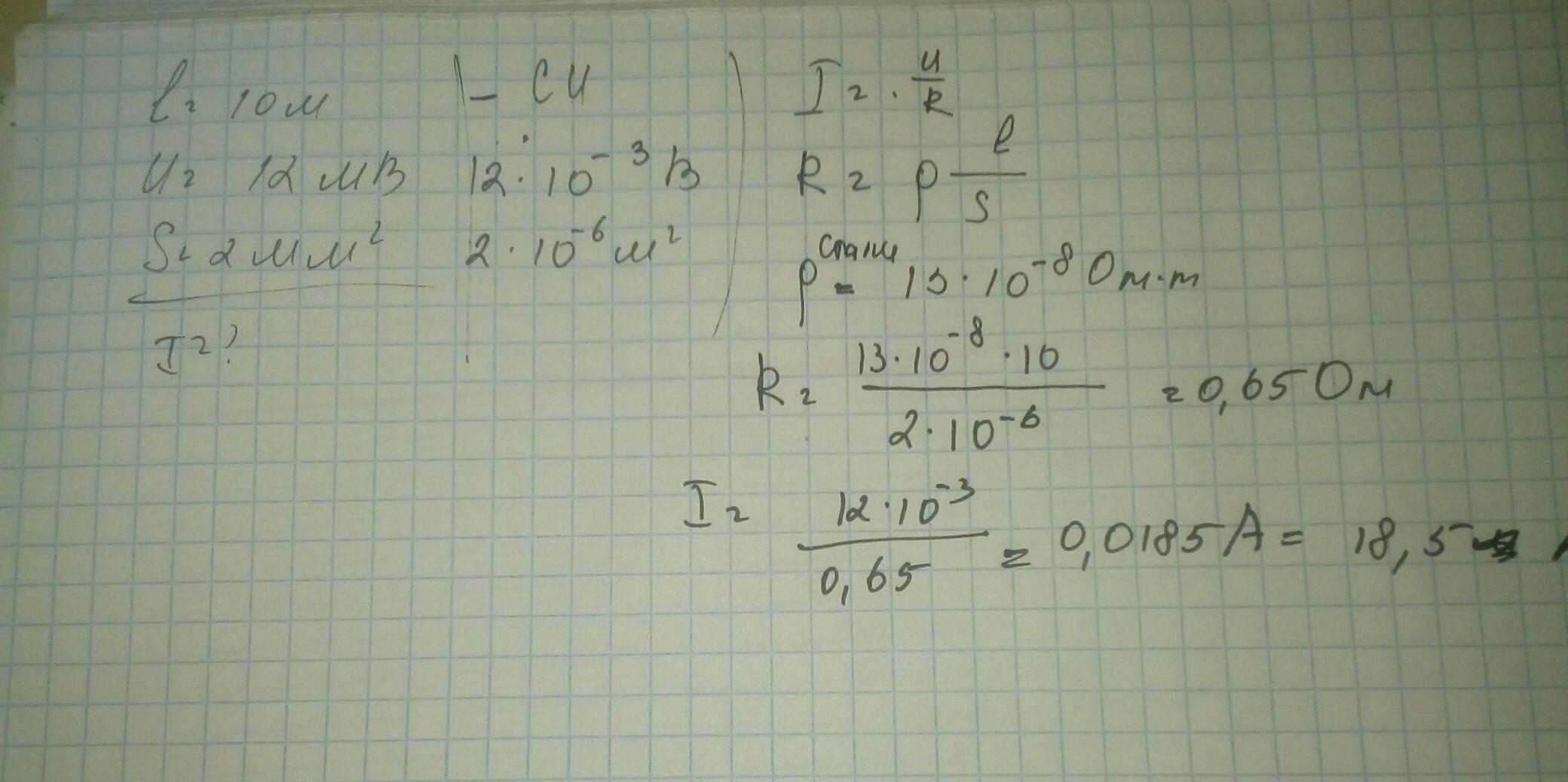 Найти силу тока в стальном проводнике длиной 10 м и сечением 2мм квадратных,на который подано напряжение 12 мВ
