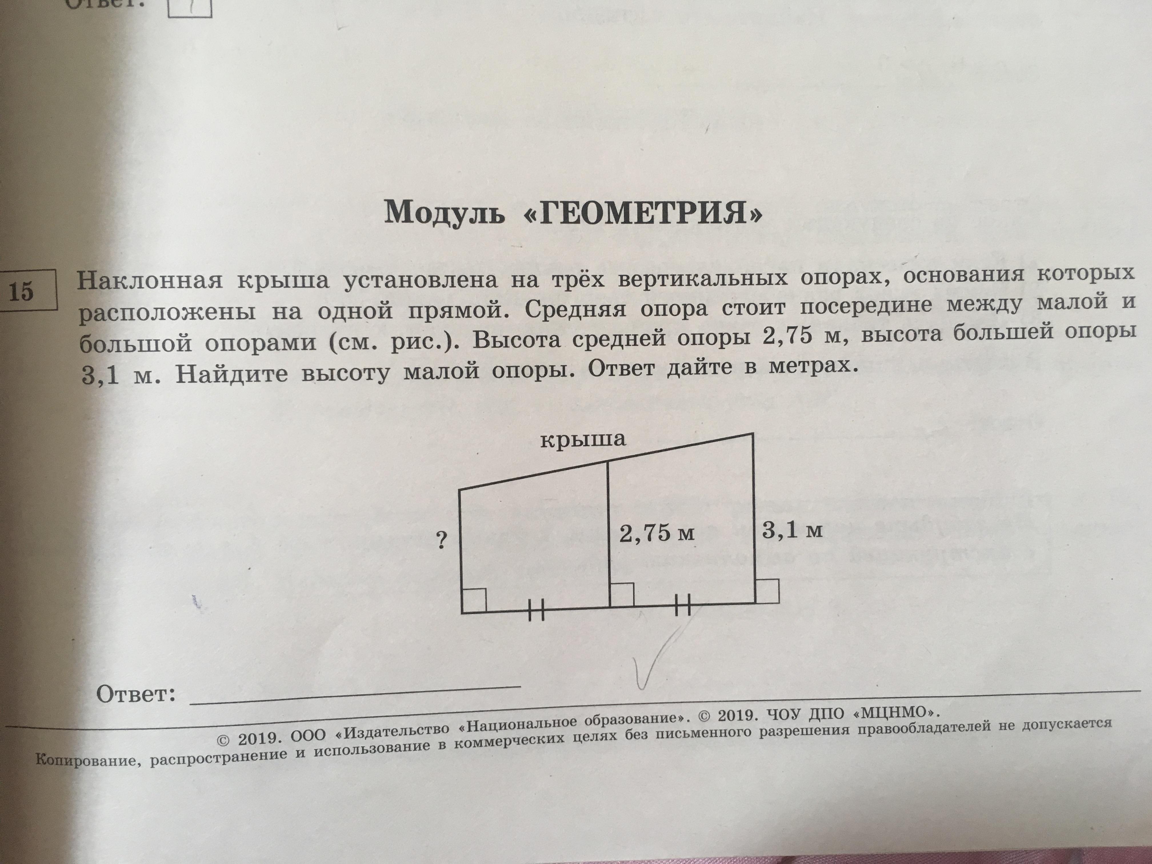 Отрезок 2,75 -средняя линия трапеции, 2,75=(х+3,1)/2, 5,5=х+3,1,