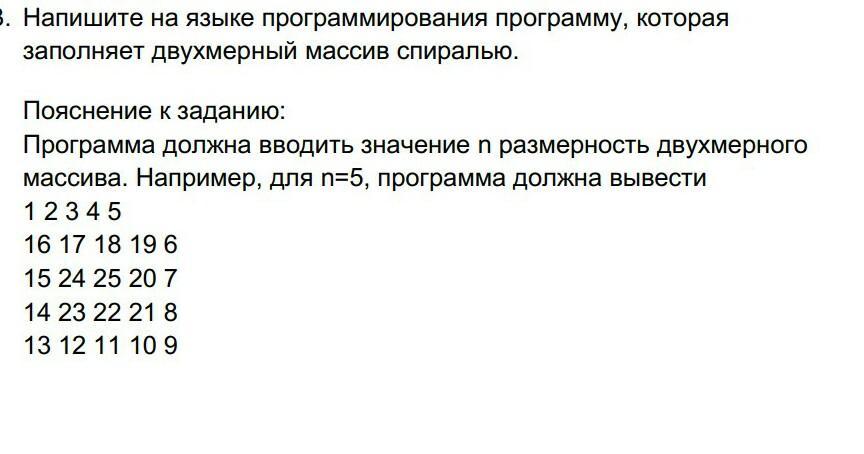 d = 0 # Направление перемещения 0 - вправо, 1 - вниз, 2 - влево, 3 - вверх