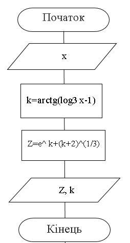 Составить блок схему ипрограмму на алгоритмическом языке для данной задачи Z=e^ k+(k+2)^(1/3) где k=arctg( log3 x-1)