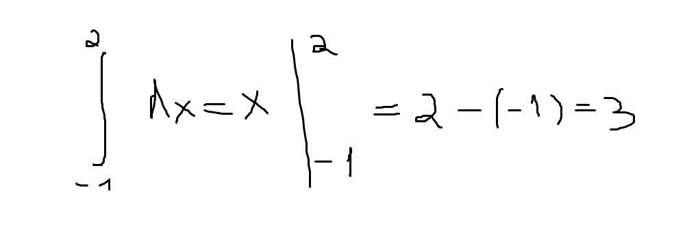 интеграл равен х, пределы интегрирования -1, 2 по формуле Ньютона - Лейбница 2-(-1)=3