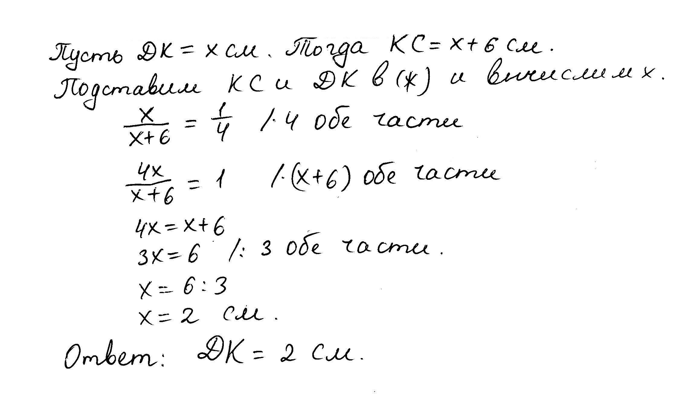 можно проще (без подобия): треугольник ВСК равнобедренный, СК=8, х=2