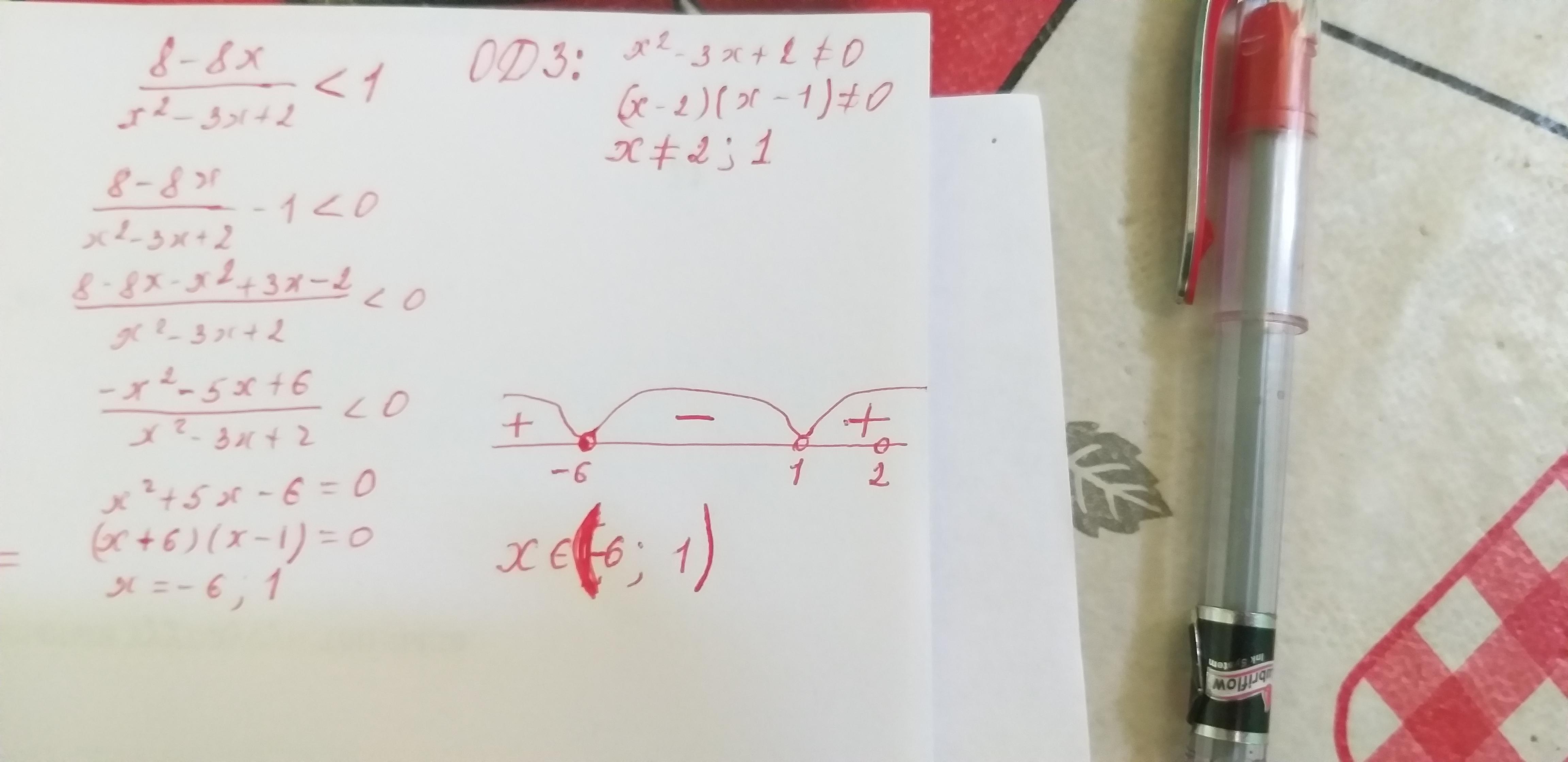 Решите неравенство: 8-8x/x^2-3x+2<1