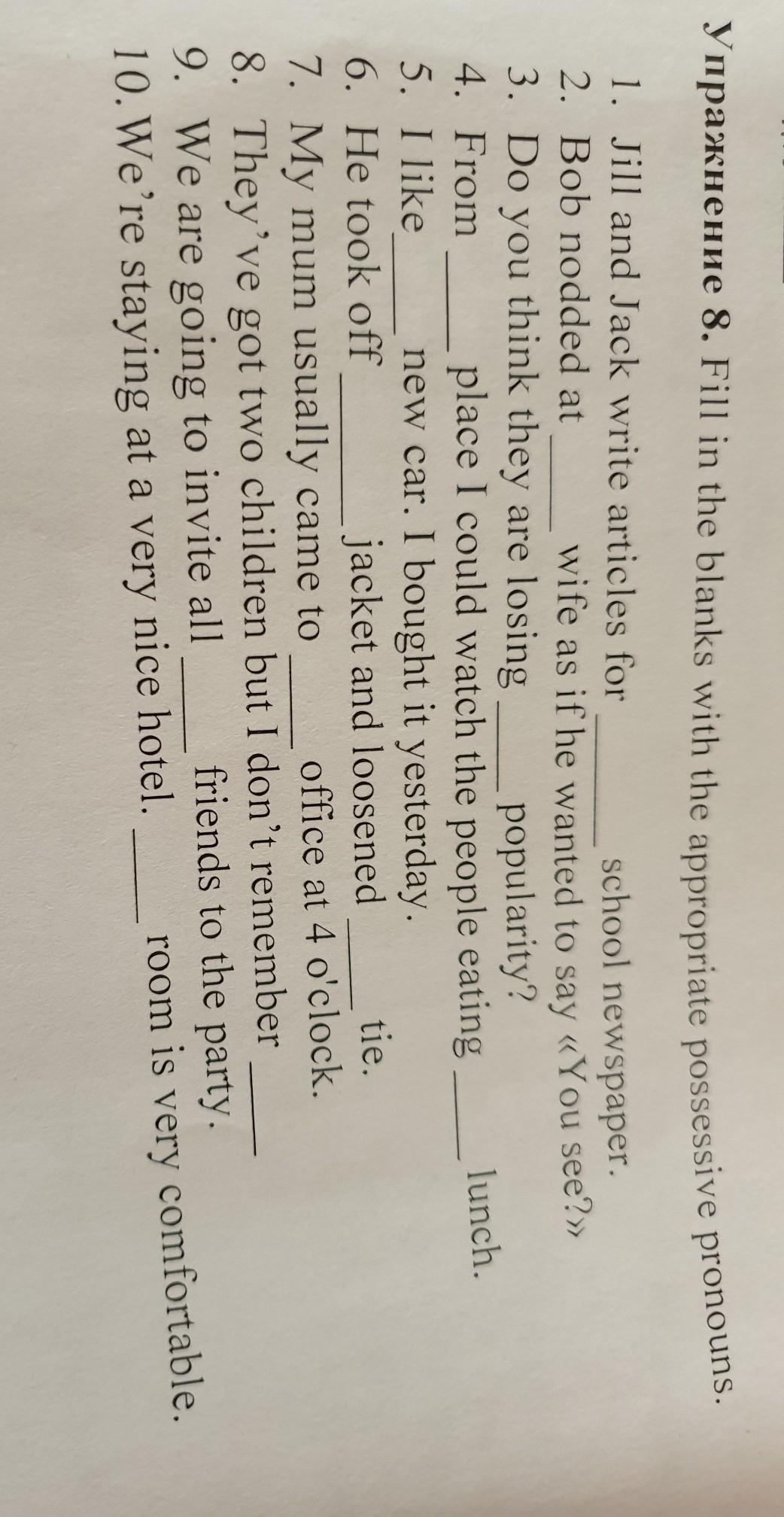 10. We're staying at a very nice hotel. Our room is very comfortable.