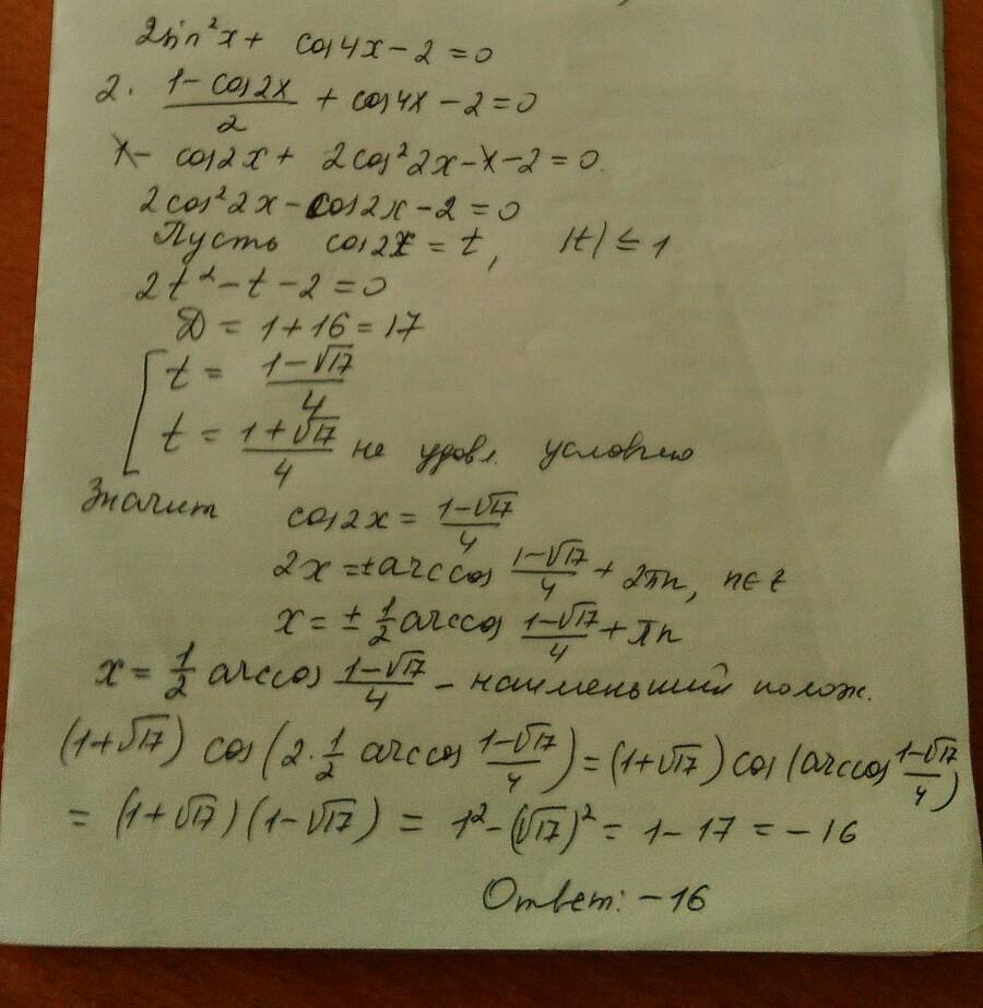 Найти значение выражения (1+корень 17)cos 2x0 , где хо — наимень-