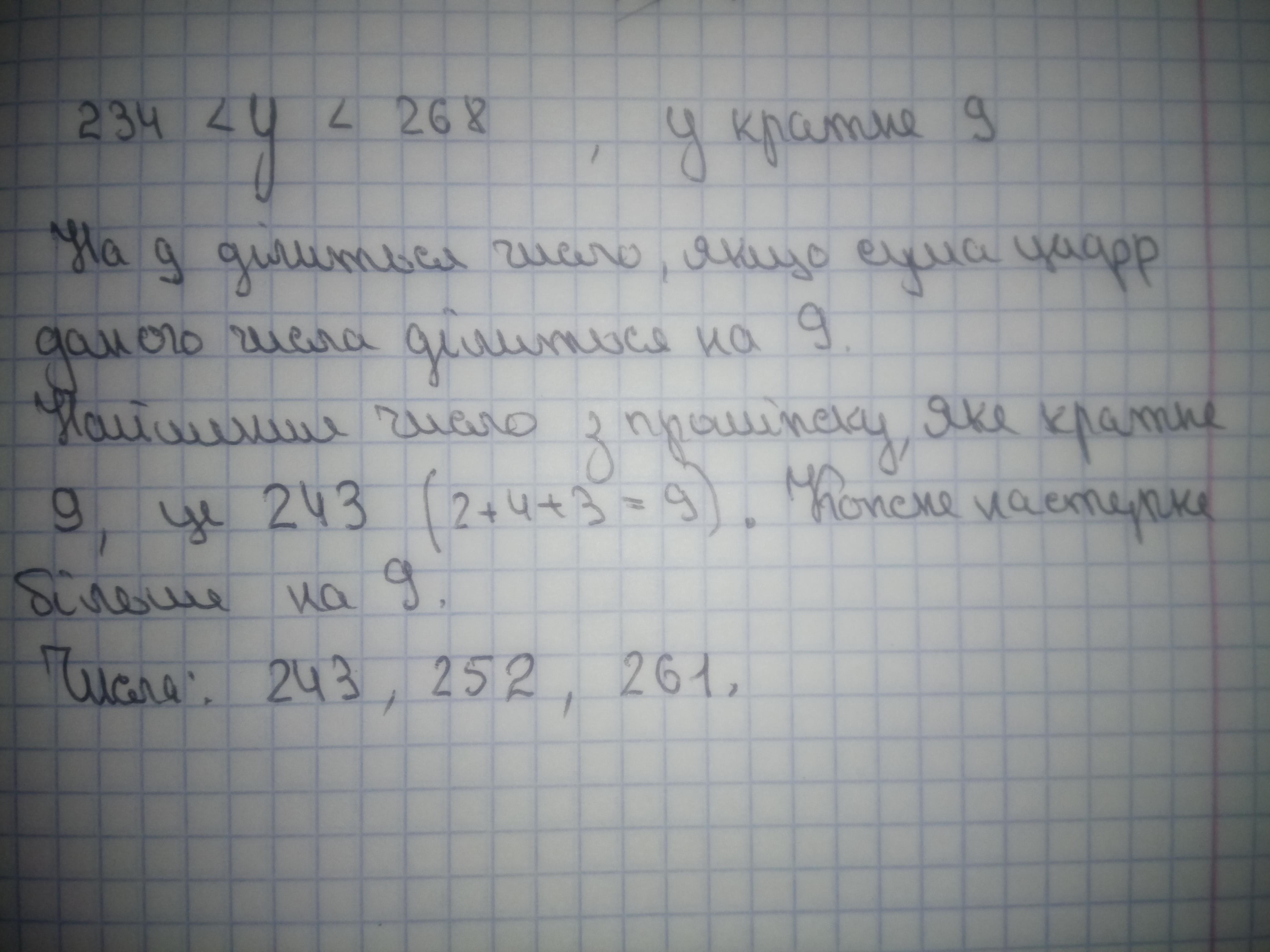 усі значення у кратні числу 9 при яких є правильною нерівніснь 234 менше у менше 268