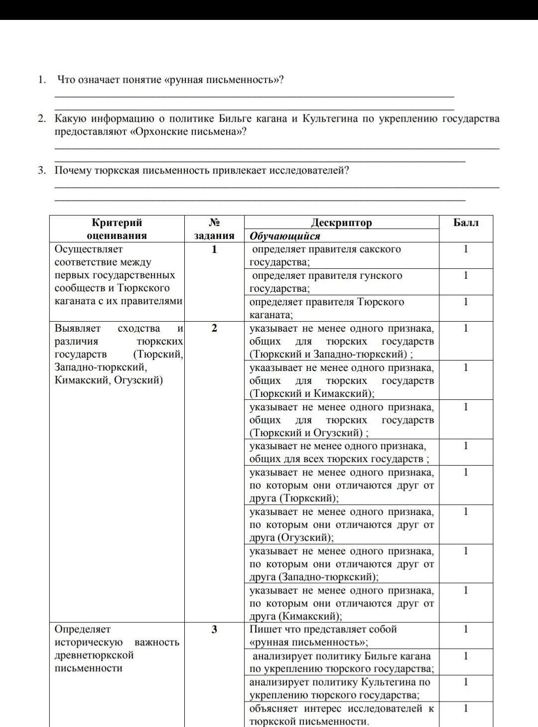 2.Бильге-каган и Культегин укрепили государство, заключили с соседями важные мирные договоры. Советник Культегина, военачальник Тоньюкок в своих «вечных» каменных письменах восславлял воинскую доблесть тюрков, подвиги Бильге-кагана и Культегина. После смерти Бильге-кагана в 741 году начался распад каганата. В 744 году образовался Уйгурский каганат (744-840 гг.). Система правления носила патриархально-феодальный характер. Верховная власть переходила по наследству от одного члена династии кагана к другому. Знать из рода кагана носила титулы ябгу, шад, елтебер. А судебные дела исполняли буруки и тарханы. Основной опорой кагана на местах являлись беки. Простых общинников-скотоводов называли кара будун - чернь. Повинность «кровного долга» - обязательная военная служба. Покоренные племена платили дань продуктами питания и пушниной. Подчиненное, вассальное оседлое население Жетысу, завоеванное тюрками называли таты. Существовали рабы из числа военнопленных. Главным видом хозяйства было скотоводство. На юге Казахстана бурно развивались города Испиджаб, Тараз, Талхир, Алмалык. Особую роль в расцвете городов сыграли согдийцы - древняя восточно-иранская народность, населявшая Среднюю Азию и Казахстан. В начале VII века тюрки массою стали переходить к оседлости. Росту городов способствовали отношения с Ираном и Византией. В Жетысу вдоль Великого Шелкового пути тюрки были вовлечены в международную торговлю. Китайский путешественник, монах Сюань Цзянь свидетельствует, что в начале VII века в ставке кагана представители знати носили одежды из шелка.