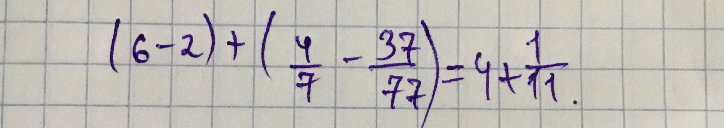 =(6*7+4)/7-(2*77+37)/77=46/7-191/77, приведем к единому знаменателю