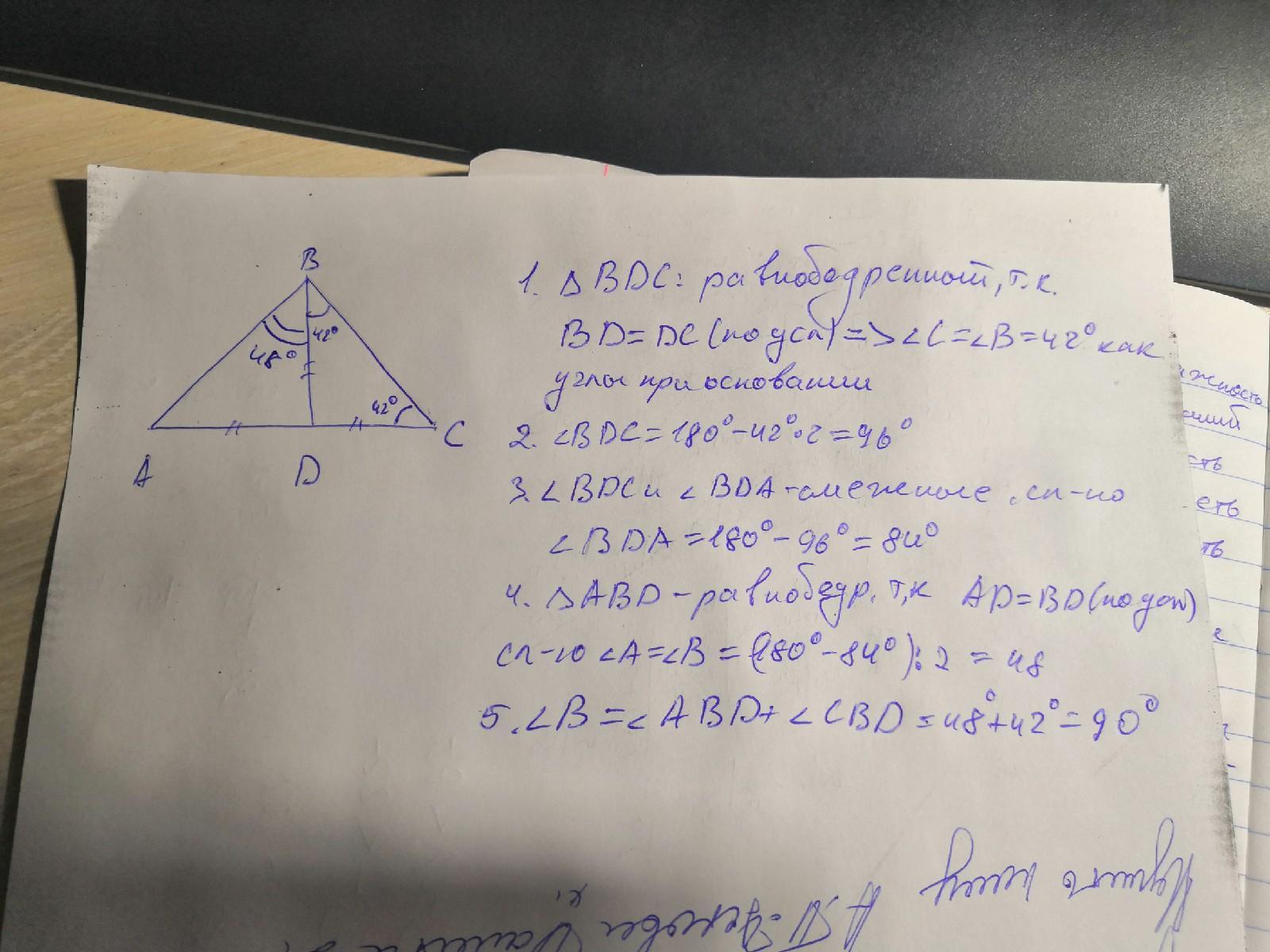ΔBDC-равнобедренный ⇒ ∠DCB=∠DBC=42°.