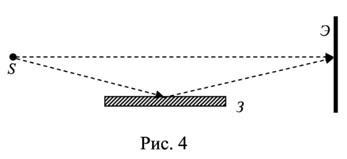 Интерференционная картина на экране Э образуется при сложении световой волны, исходящей от когерентного источника S в виде тонкой нити, и волны, отраженной от плоского зеркала З (рис. 4). Расстояние L = 1 м от источника до экрана значительно превышает расстояние от источника до плоскости зеркала. Длина волны излучения равна λ = 500 нм. Ширина интерференционных полос на экране составляет Δx = 0.25 мм. Во сколько раз увеличится ширина интерференционных полос, если источник отодвинуть от плоскости зеркала на Δh и придвинуть к плоскости экрана на ΔL?