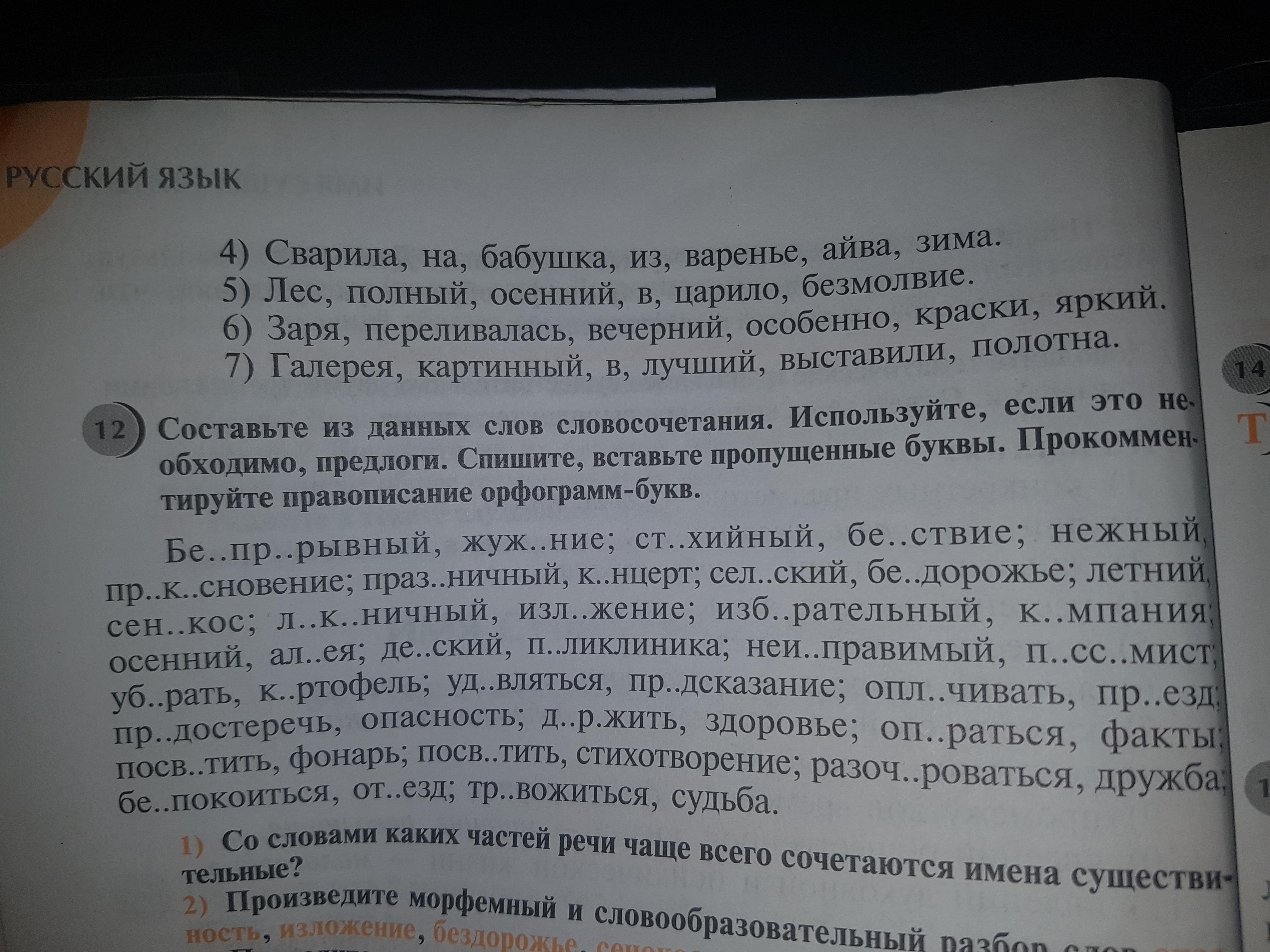 Непрерывное жужжание; стихийное бедствие; нежное прикосновение; на праздничном концерте; по сельскому бездорожью; летний сенокос; лаконичное изложение; избирательная компания; по осенней аллее; детская поликлиника; неисправимый пессимист; убирать картофель; удивляться предсказанию; оплачивать проезд; предостеречь от опасности; дорожить здоровьем; опираться на факты; посветить фонарём; посвятить стихотворение; разочароваться в дружбе; беспокоиться за отъезд; тревожиться о судьбе