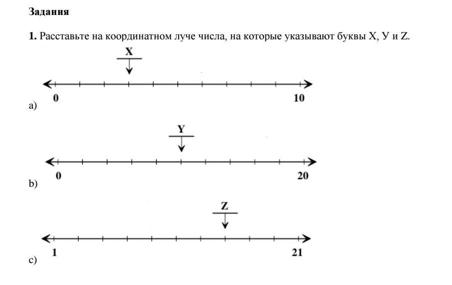 Чтобы безошибочно расставить координаты, надо знать длину отрезка и длину единичного отрезка. В а) длина полная 10 ед. отрезков, единичный равен единице.