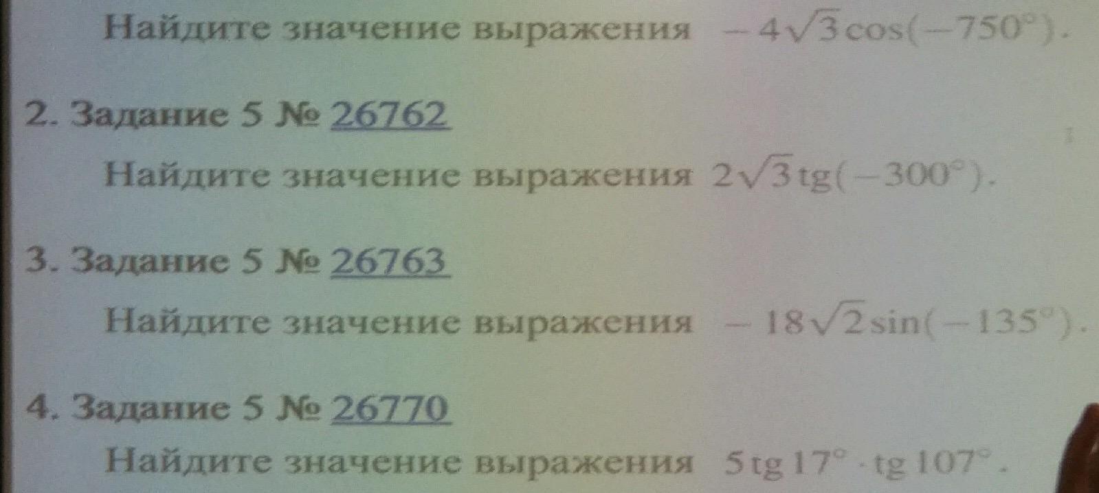 значения тригонометрической функции в 30 мы можем посмотреть в таблице, а tg(270+x)=-ctg(x) по формулам приведения