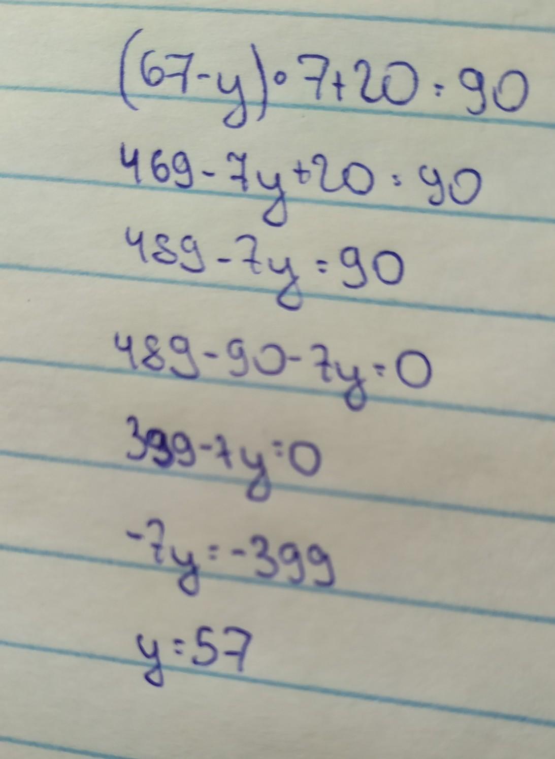 (67-y)•7+20=90; (308-(25+x) •7) ÷5=7