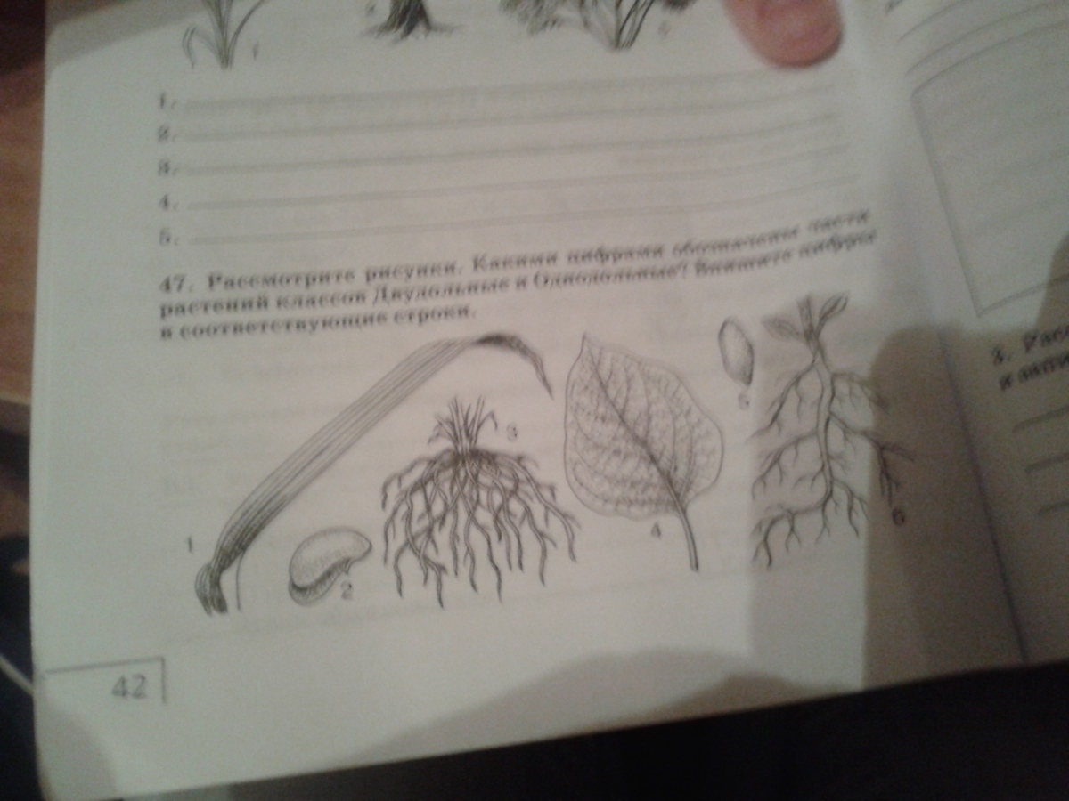 Рассмотрите рисунки. Какими цифрами обозначены растений класов Двудольные и Однодольные?