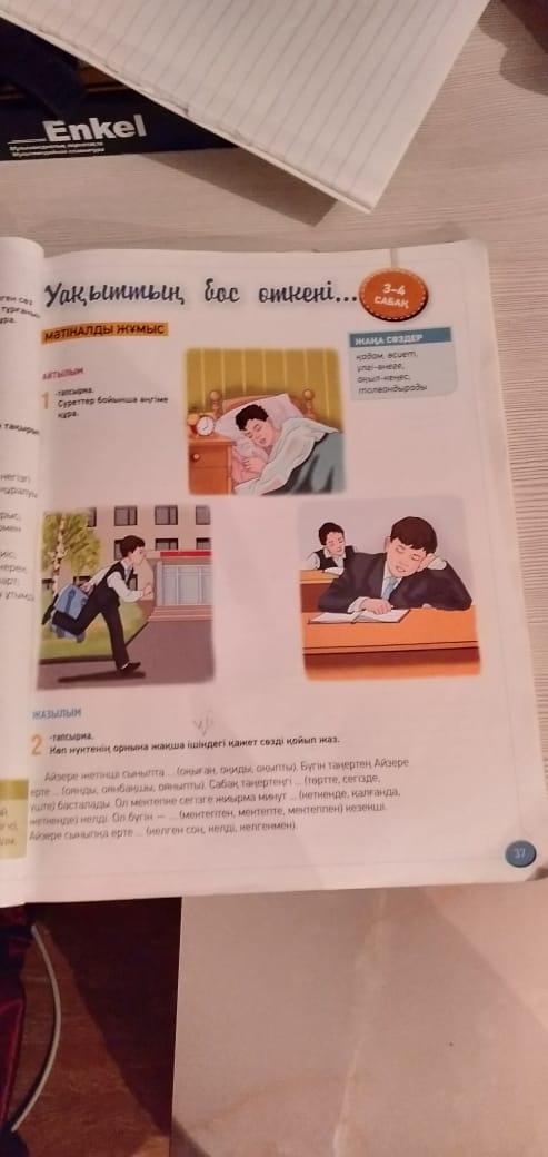 Алинур сабактан кешигип, коп уйыктап калады. Оянган сон тех сабакка жугиреди. Сабакта шаршап уйкысы келип отыр. Ойткени ол кеше тунги 12-ге дейин телефонмен отырды.