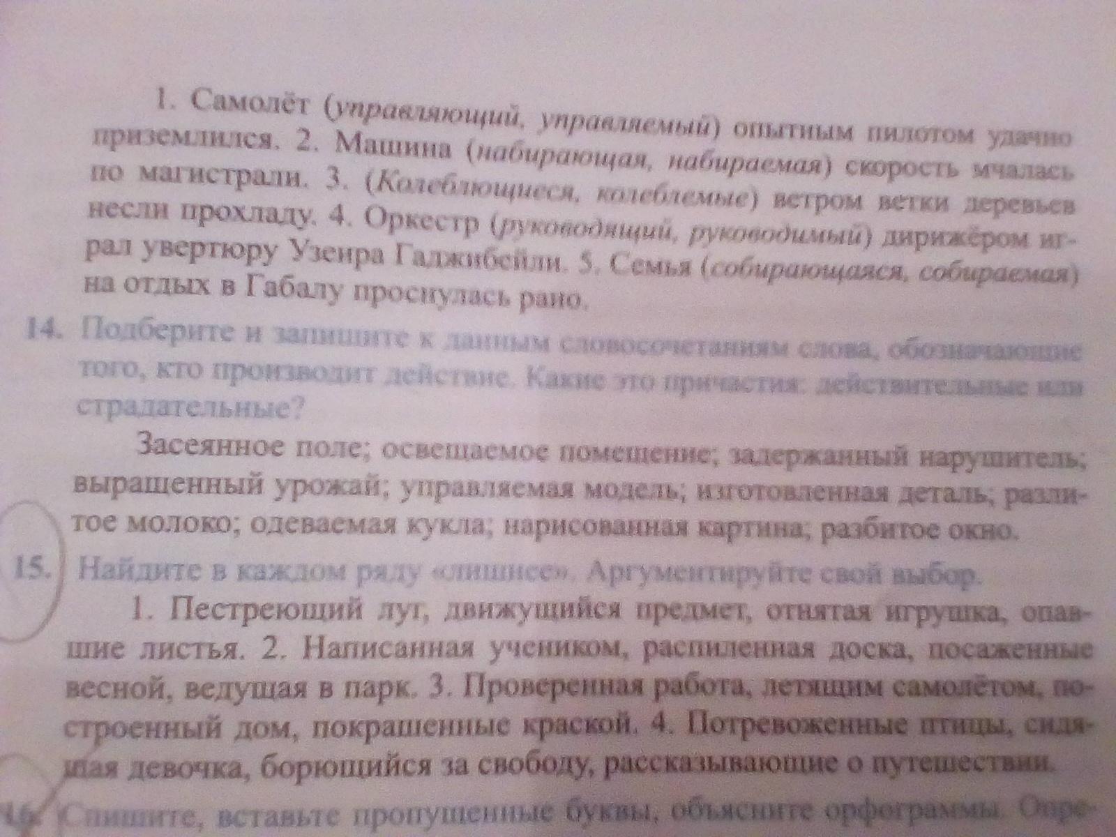 1.там лишнее отнятая игрушка( потому что там все действительные причастия) 2.ведущая в парк (потому что там все страдательные) 3. летящим самолетом (там все страдательные) 4 потревоженные птицы (там все действительные)