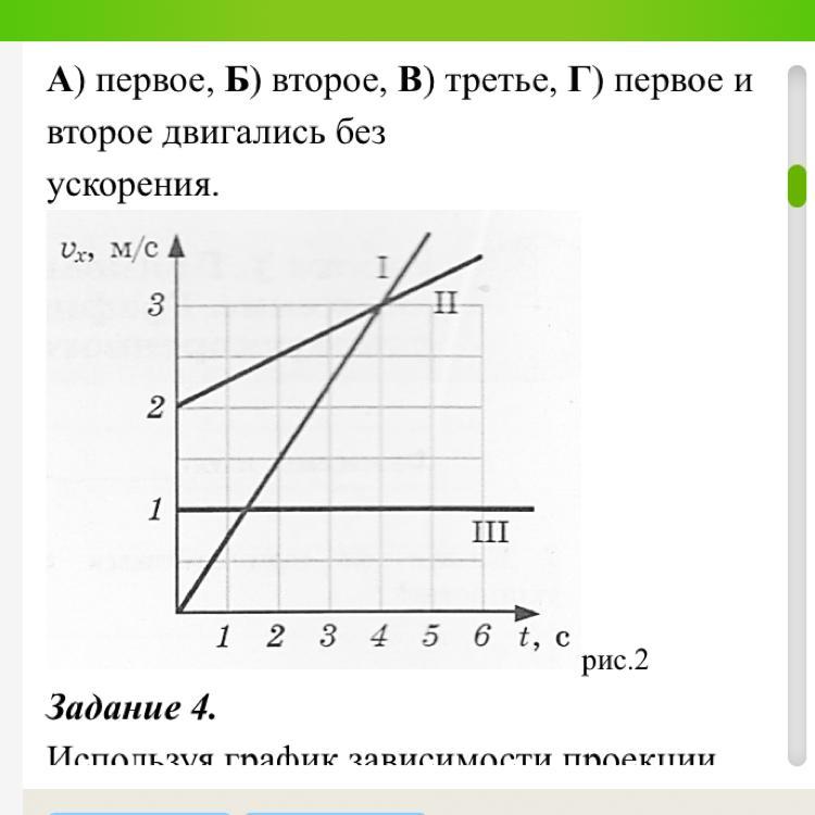 А) первое, Б) второе, В) третье, Г) первое и второе двигались без