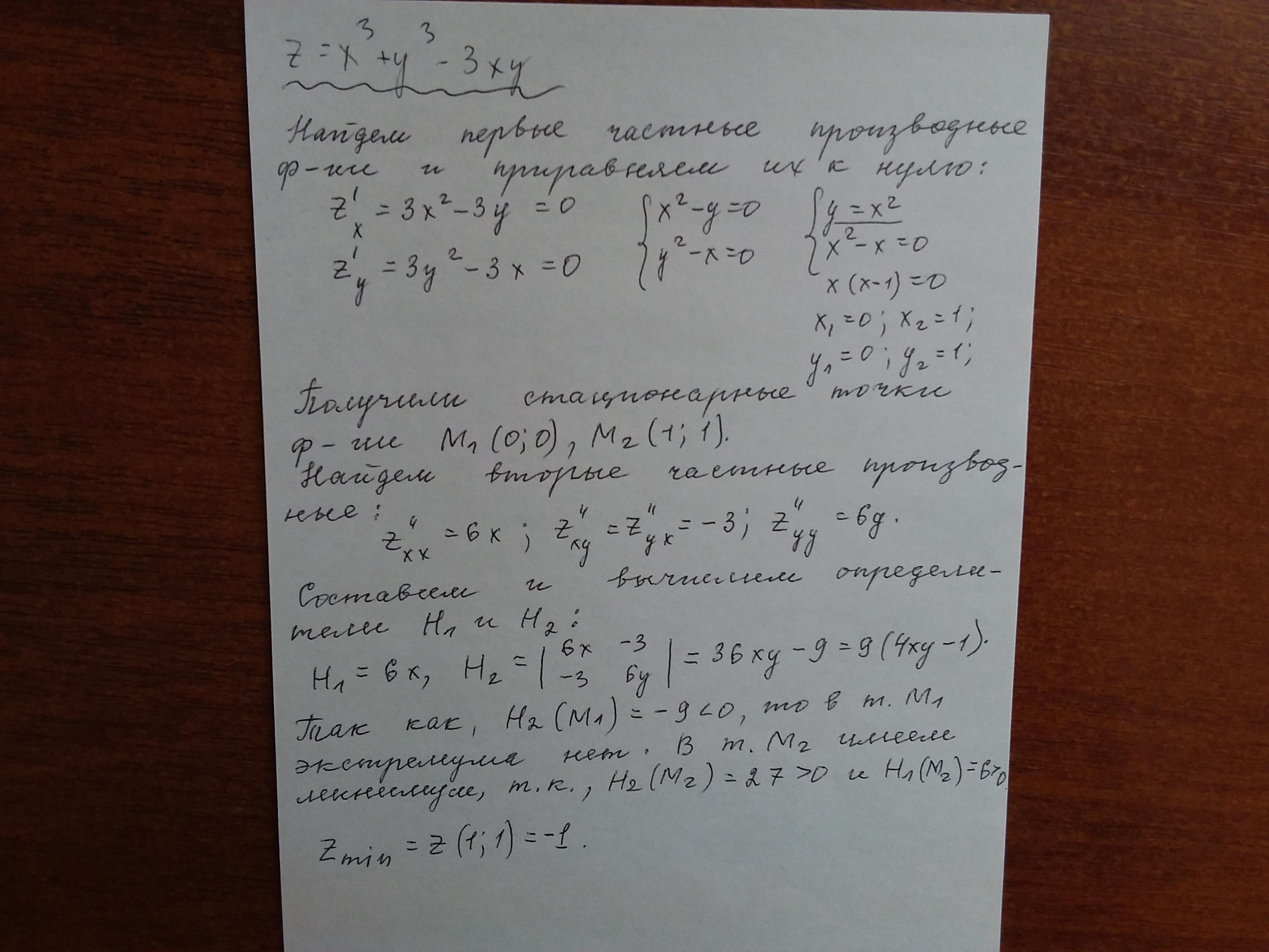 исследовать на экстремум функцию z=x^3+y^3-3xy