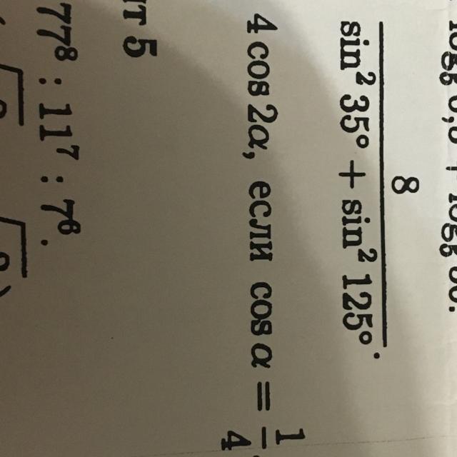 Найдите значение выражения 4cos2a, если CosA=1/4
