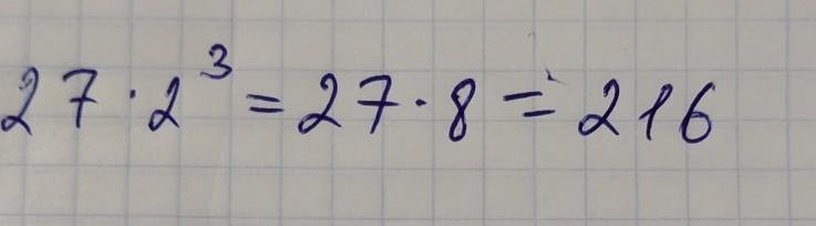 216, ибо 2 в 3 степени - 8, а 8×27=216