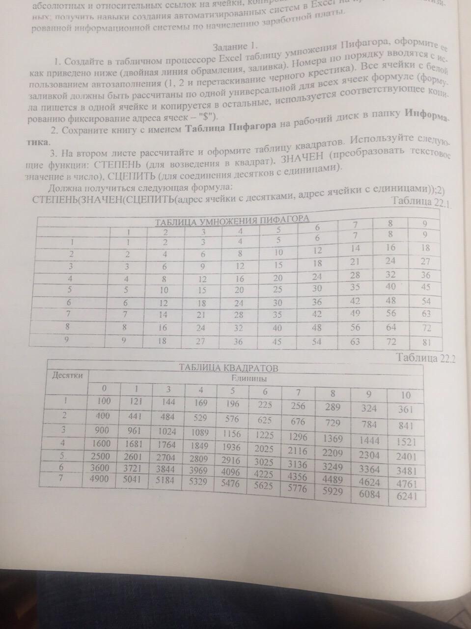 Примечание: обратите внимание, что в таблице квадратов в задании отсутствует столбец со значением 2