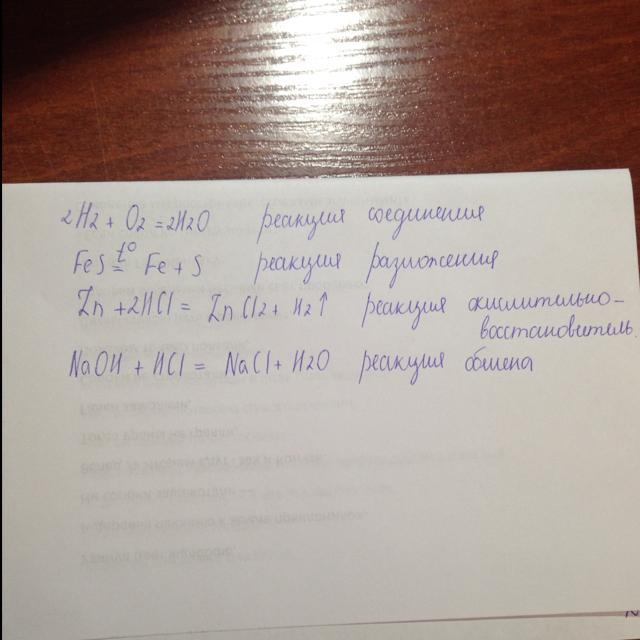 Напишите полное химическое уравнение следующих реакций и проставьте коэффициенты. Определите,к каким видам реакций каждая из них относится: