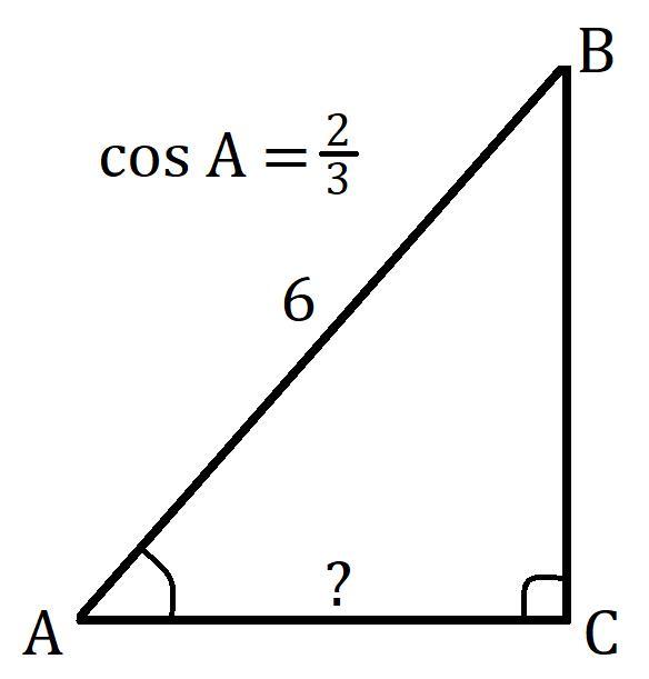В треугольнике АВС,угол С=90°.АВ=6,cosA=2/3.Найдите длинну катета АС?