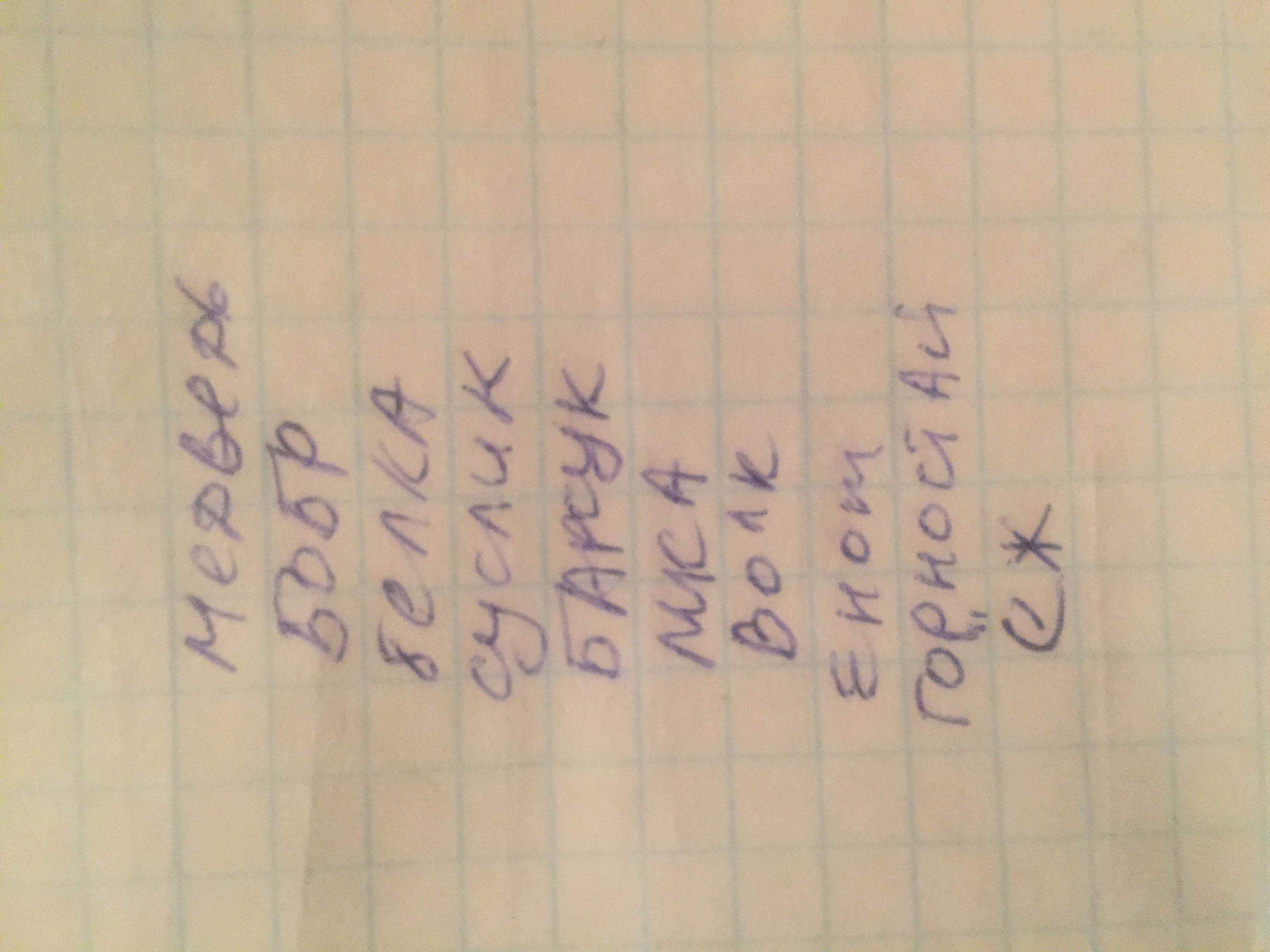 Надо составлять схему. Сначала записываем зверей с максимальным расстоянием. Это ёж и барсук. Оставляем между ними 4 места. Дальше смотрим на животных с тремя местами между ними, это бобр и лиса. Ни сверху, ни снизу уже написанных животных они не могут быть, тогда животных будет больше. Значит, лиса или бобр находятся между ежом и барсуком. Бобр там быть не может, потому что около лисы есть еще волк с сусликом. Значит, лиса где-то после барсука. Дальше уже просто подборкой из этих четырех мест. Только сразу после барсука она может бежать, на остальных местах потом не найдется двух мест рядом для енота и горностая. Постепенно вписывая животных, получаем, что третьей пришла БЕЛКА