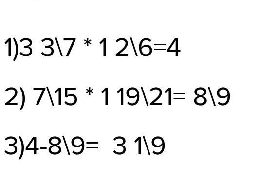 3целых 3/7 × 1целая 1/6 - 7/15 × 1целая 19/21 = 3целых 1/9